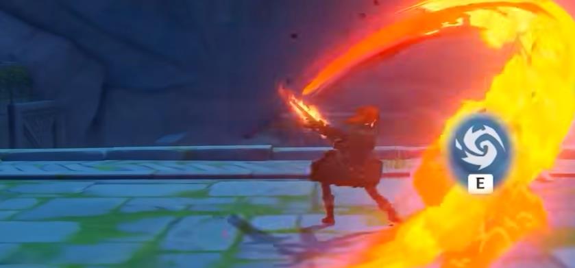 重?fù)簦?/strong>持續(xù)消耗體力,快速進(jìn)行連續(xù)的斬?fù)?,結(jié)束時(shí)會(huì)進(jìn)行一次格外有力的揮砍??蓪?duì)拆除巖元素構(gòu)造物、部分空中敵人有較好的打擊效果。此外在釋放元素爆發(fā)后,重?fù)魰?huì)附魔為火元素傷害從而享受更高的傷害加成。