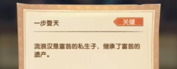 1、第一天謎題圍繞流浪漢定制體面衣物和富商遺產(chǎn)繼承傳聞展開,結(jié)合線索可推斷富商遺產(chǎn)由私生子繼承,此答案需將兩件事關聯(lián)分析得出。