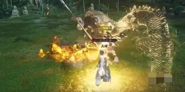 1、大世界背面施展時會生成暗金色巨龍,巨龍昂首向前噴出橘紅色火焰,火焰中夾雜濃煙,在昏暗環(huán)境中形成強烈視覺沖擊,展現(xiàn)出神秘而霸氣的氛圍。